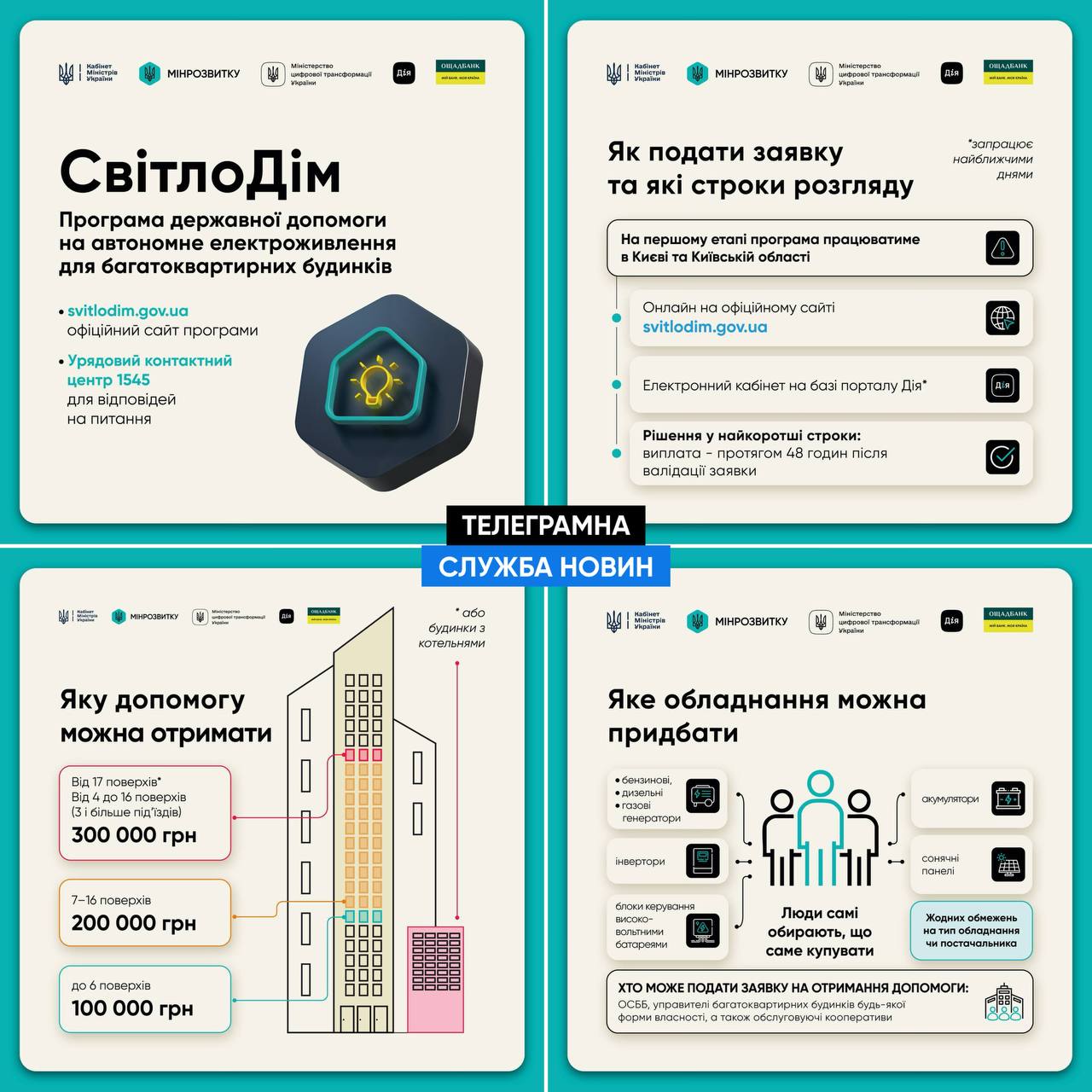 Державна програма «СвітлоДІМ»: одноразова допомога 100–300 тис. грн для ОСББ Києва на автономне електроживлення. -